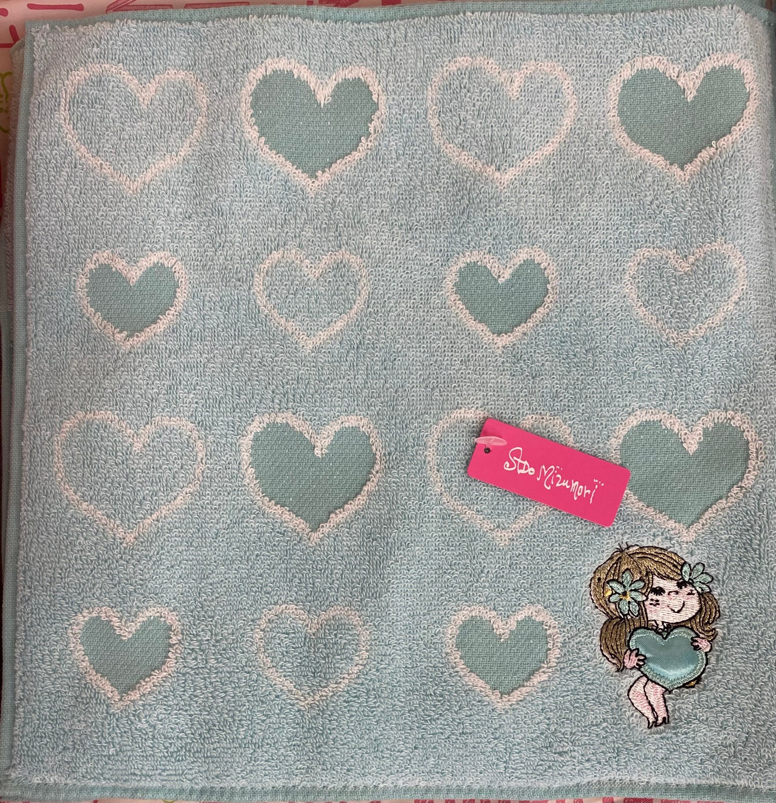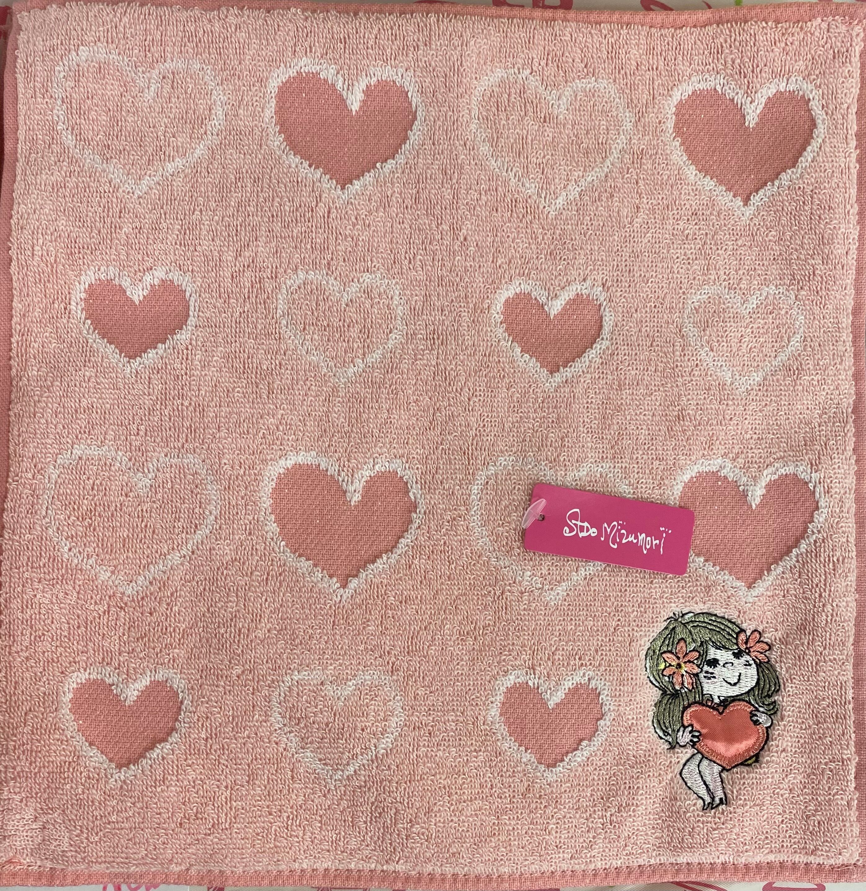 「ミータン」と「ハートのプレゼント」の女の子がワンポイントで刺繍アップリケされています。
