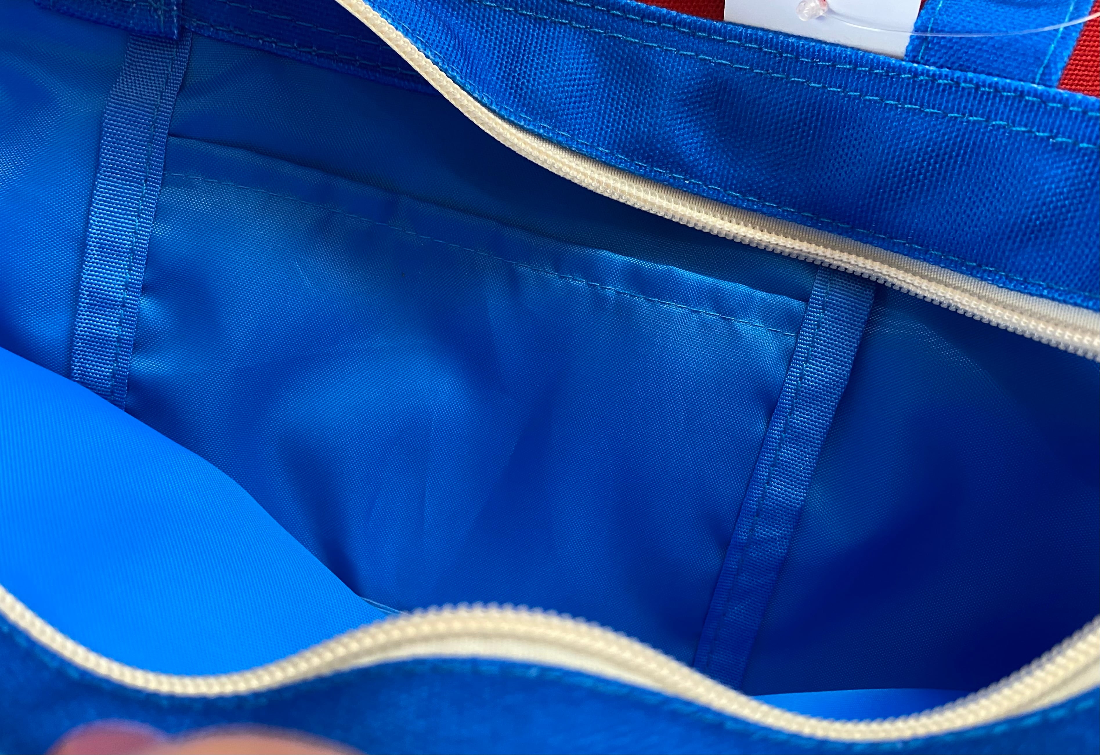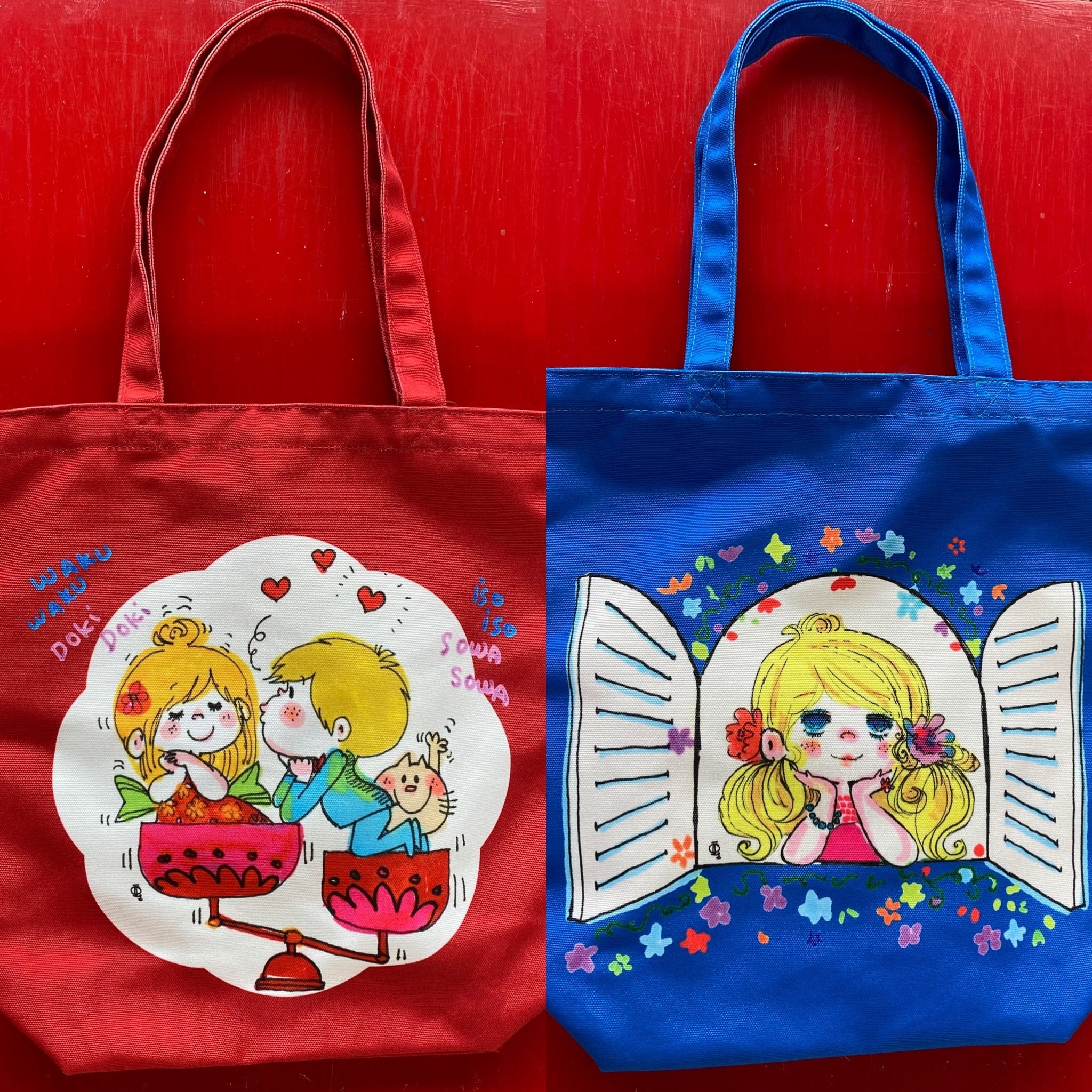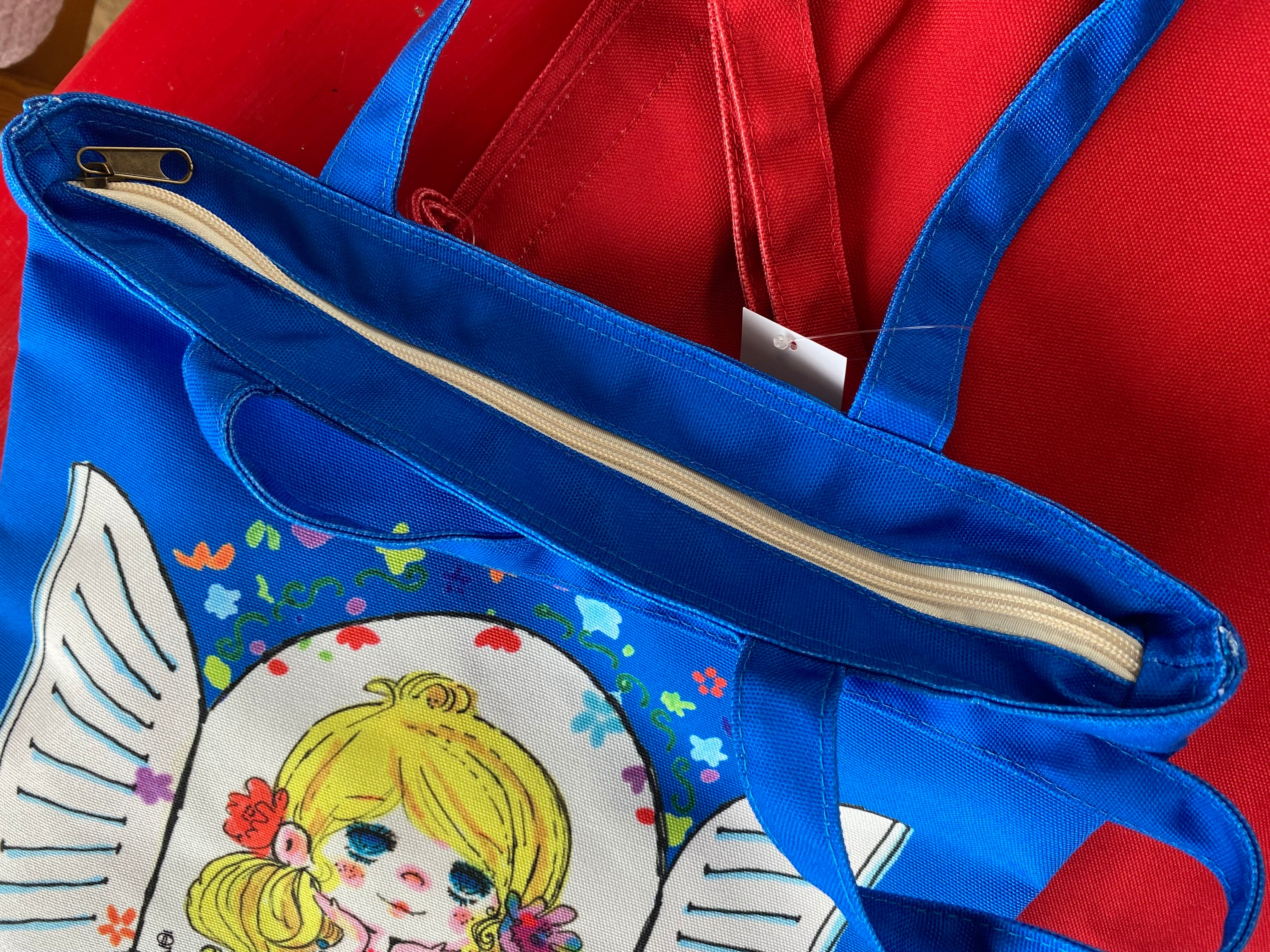 レトロシリーズ第2弾 レトロかわいいイラストとポップな赤!青!のバッグ「カラートートバッグ2025」です。サイズ:37cm・36cm・マチ12cm。開閉部はファスナー付きなので安心!裏地もしっかり付いて内ポケット付き。ショルダーバッグとしても使えるので機能性抜群です。ポリエステル帆布生地使用。
