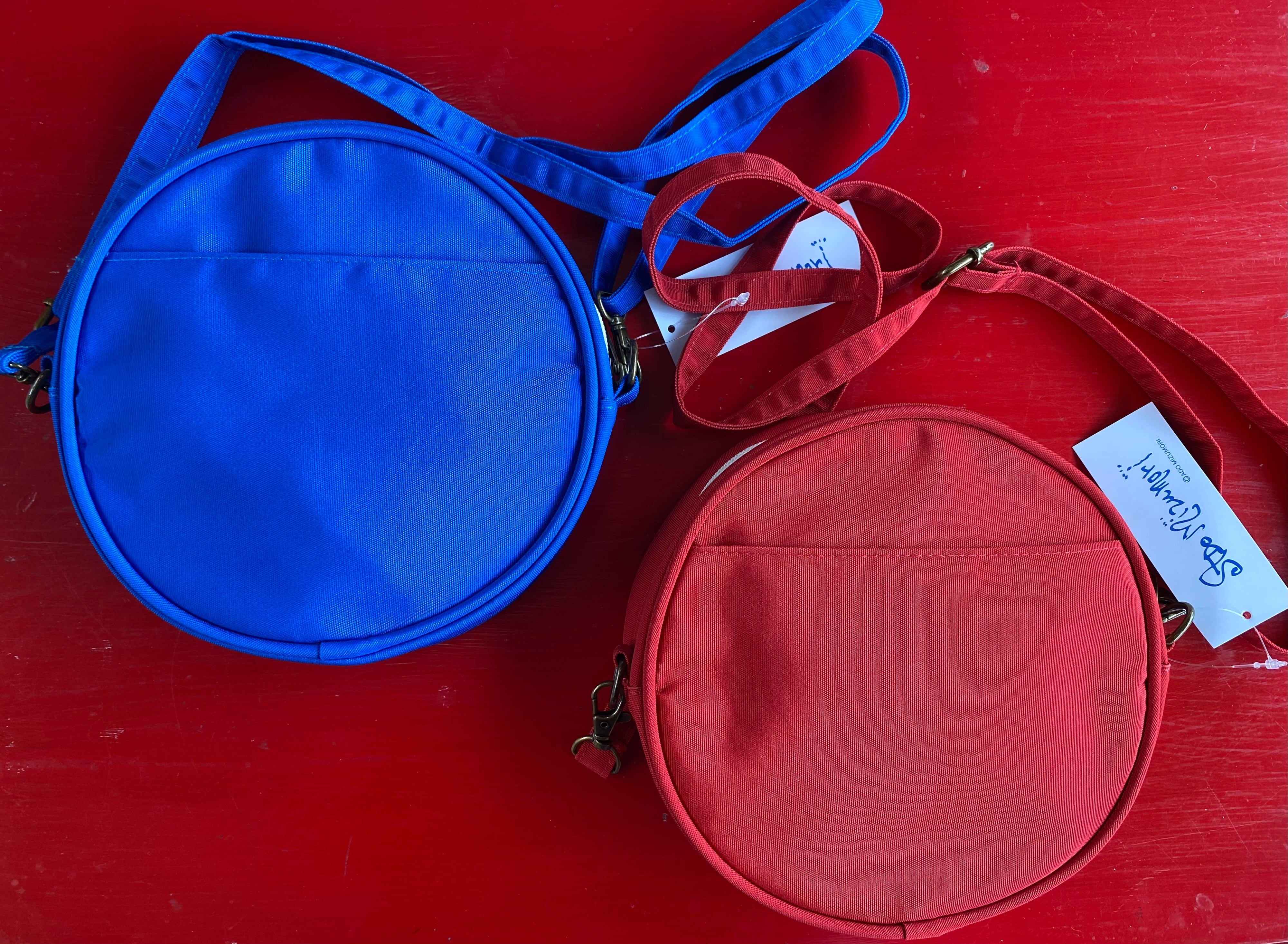 サイズ:直径約18cm・マチ3.5cm。開閉部はファスナー付きで安心!取り外し可能なショルダーストラップ付き(ポシェットとしても使える長さで調節も可能)。内ポケット付きで、裏側の外ポケットはスマホも収納できる大きさ。機能性抜群です。ポリエステル帆布生地。