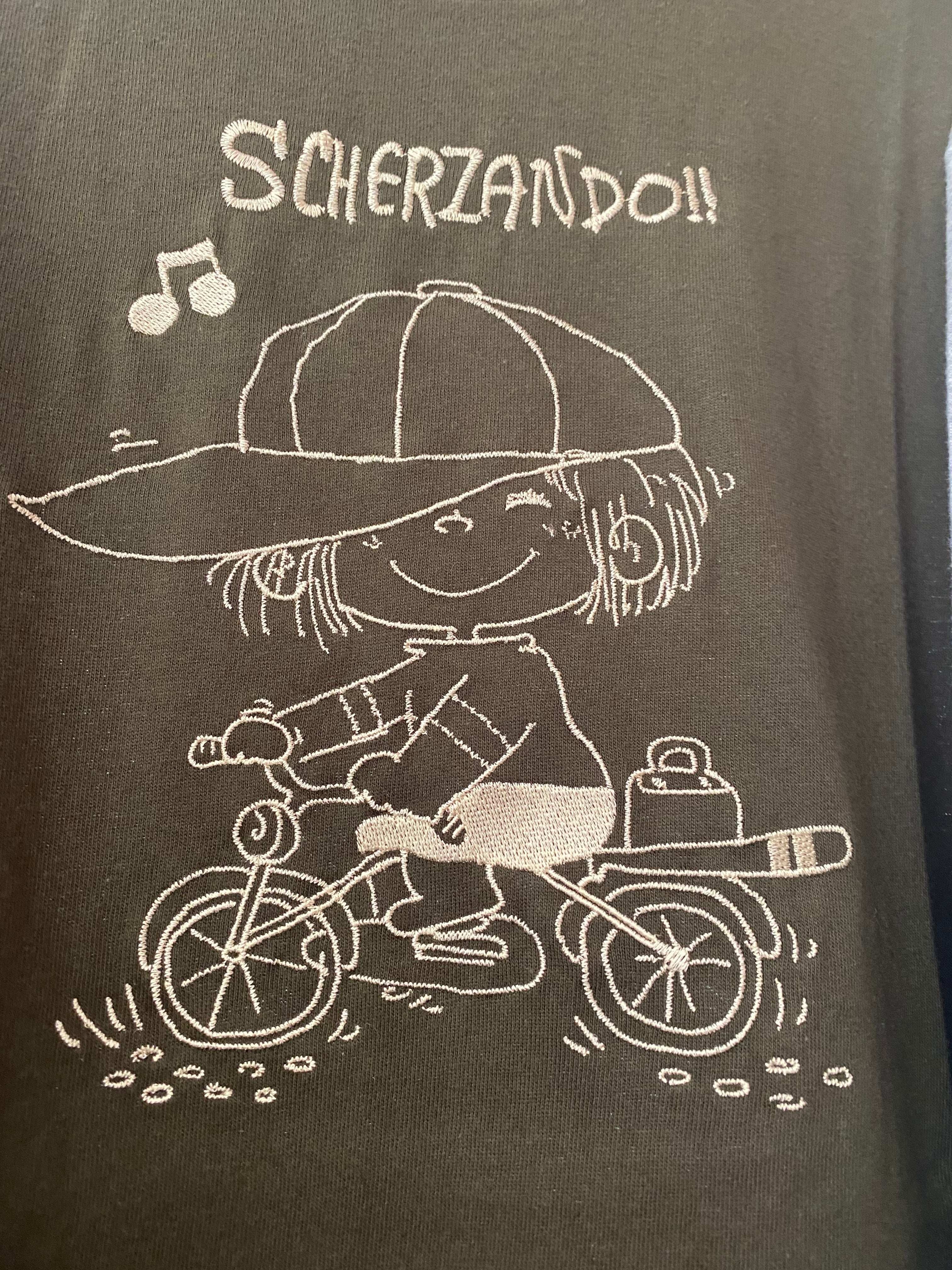 サイズ:フリーLサイズ、身丈:約74cm 身幅:約55cm (1サイズ) 。お馴染み大人気のオトコノコとオンナノコ・新作ジテンシャが一色使いで大きく刺繍されています!