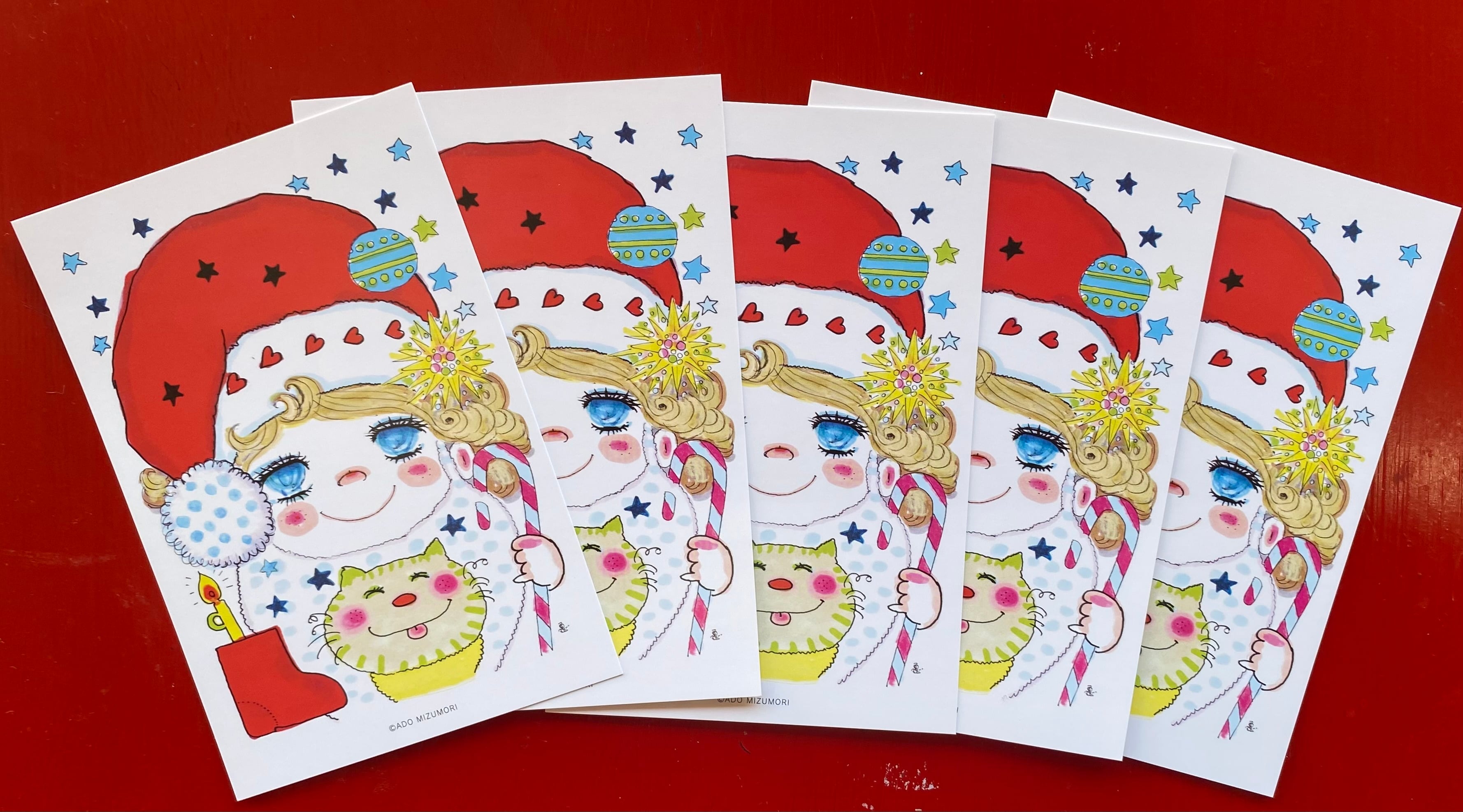 可愛い亜土ちゃんサンタさんとみーたんのポストカード「クリスマス」5枚セットでのご案内です!