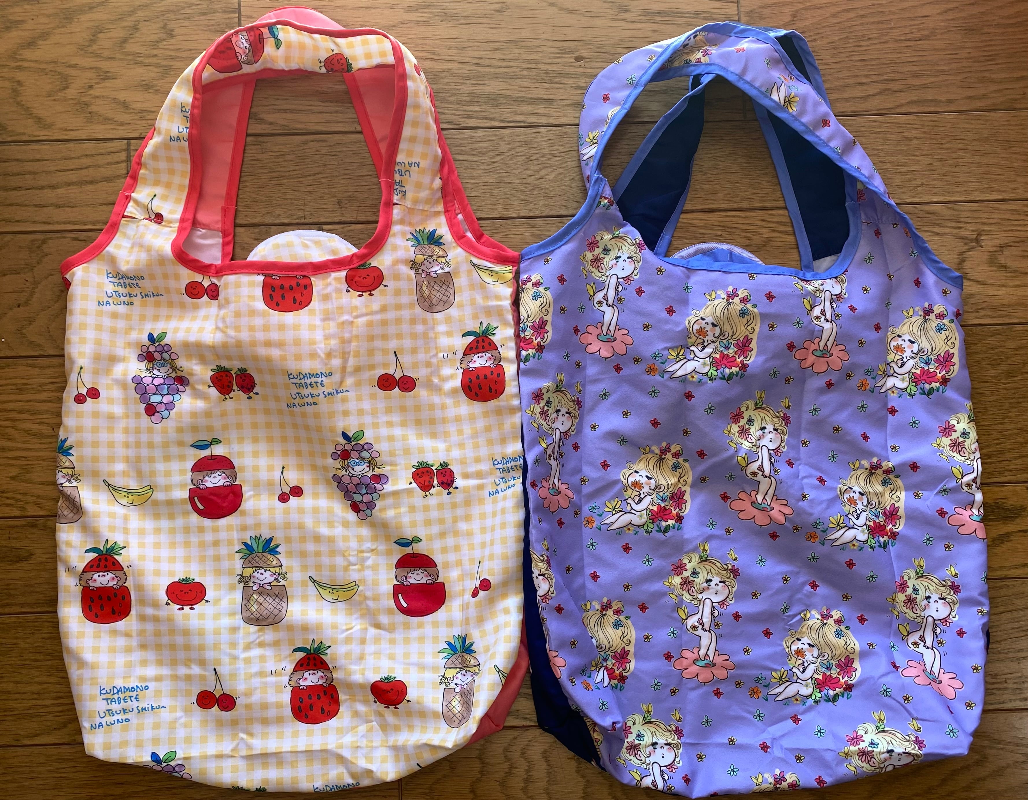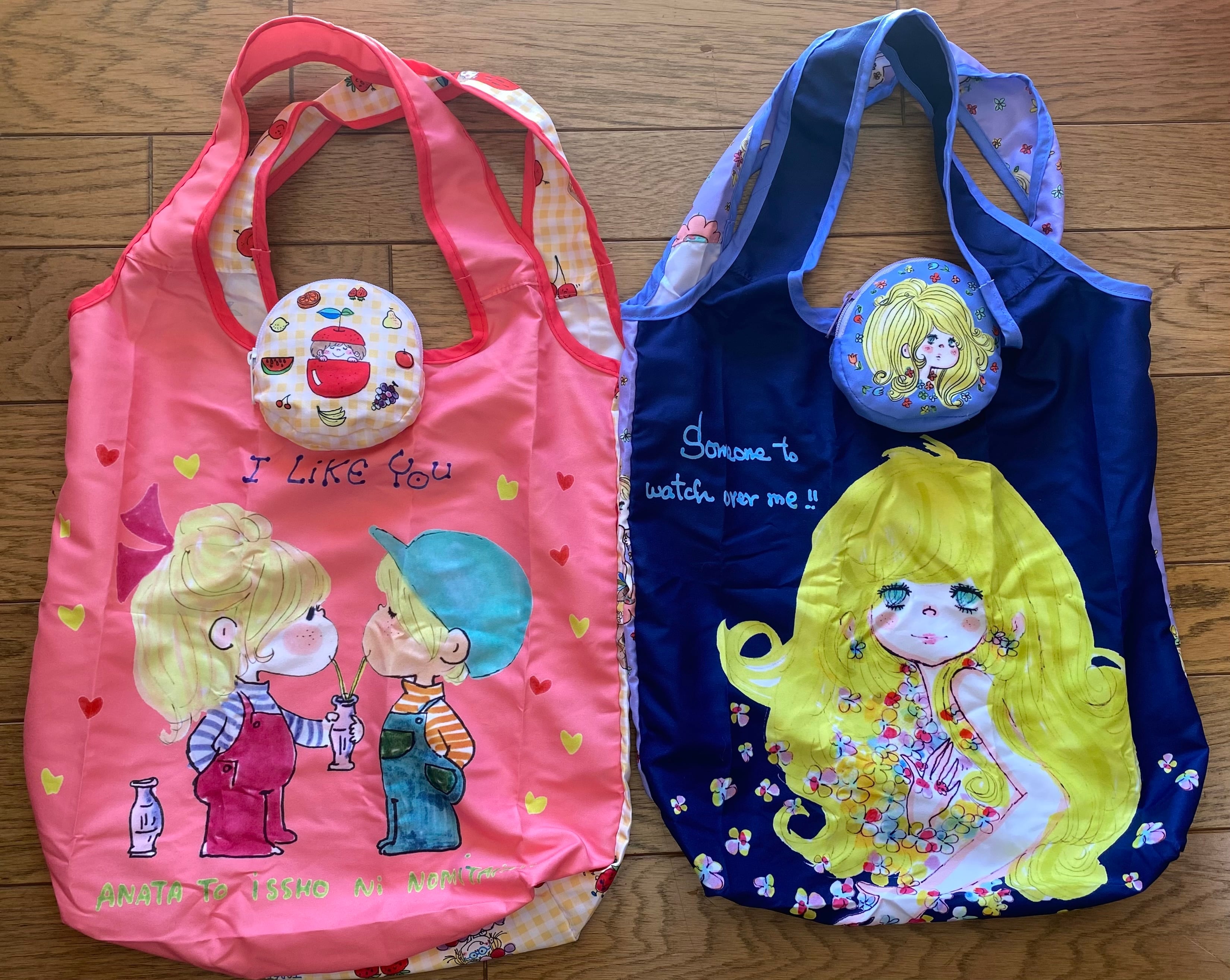 昨年に続いて、大好評の、ファスナー付き収納ポーチに入った可愛いエコバッグの新作が登場!バッグ部分の大きさは約39×40×10cm。持ち手も幅広く手や肩にくいこみにくく作られています。手触りが良く柔らかくて丈夫なポリエステル製。裏側のチラシ柄がまた可愛い。