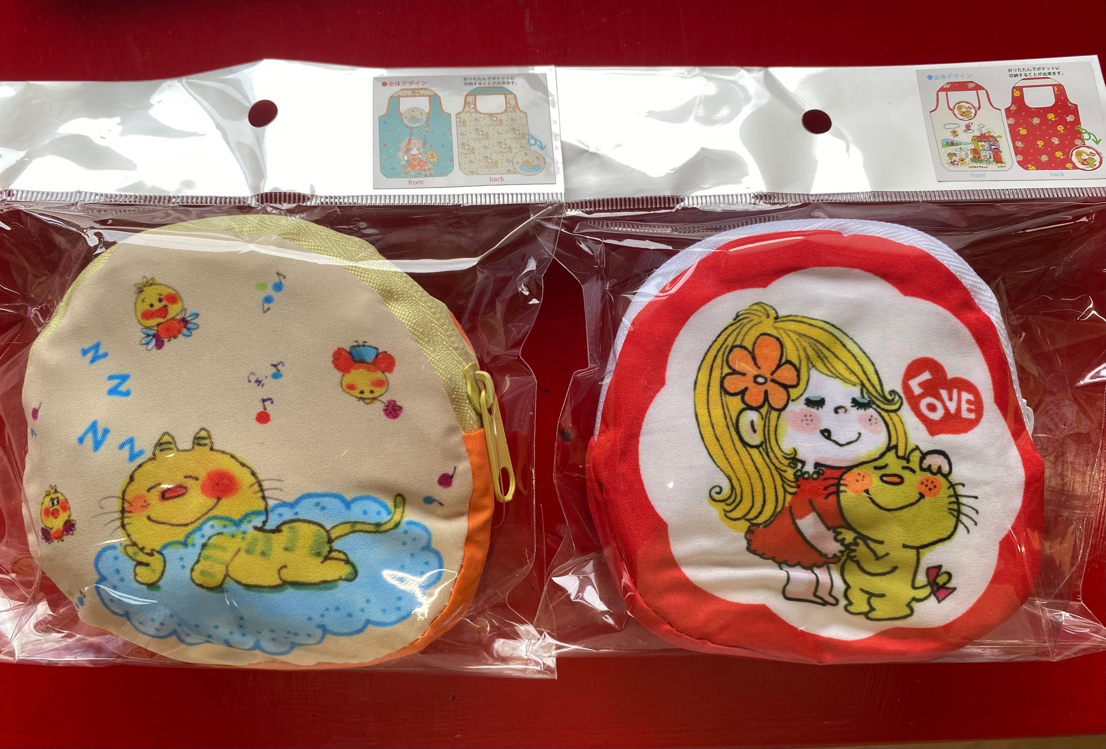 サイズ(バッグ):約39×40×10cm。ポリエステル製。丸いファスナー付ポーチに入ったエコバッグの第3弾。今回は亜土ちゃん作品の中でも大人気の「オウチ」と「ブランコ」!裏側のチラシ柄もまた、可愛い!